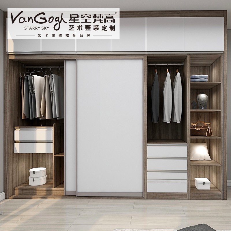 【星空梵高】現(xiàn)代簡(jiǎn)約整體定制衣柜 塔特森林·邁阿密胡桃+玉石白衣柜