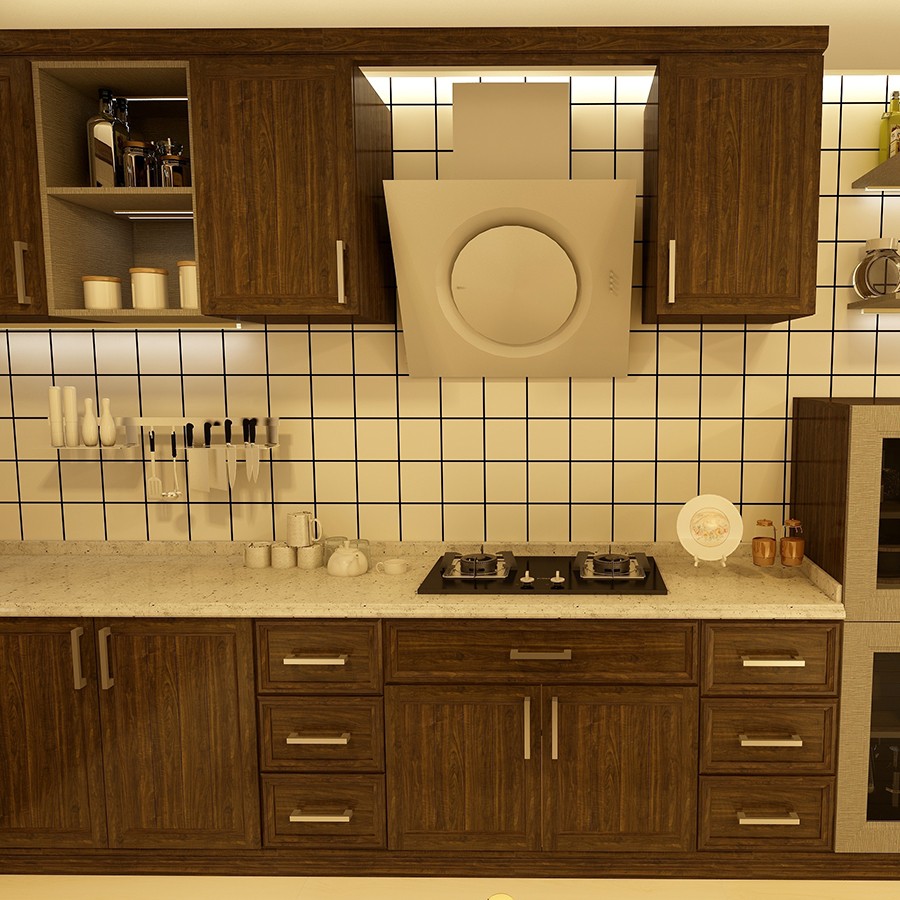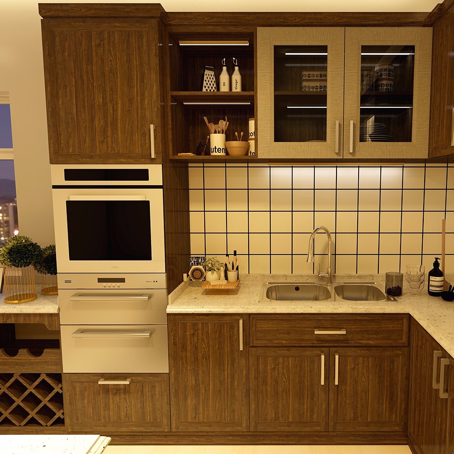 【星空梵高】現(xiàn)代簡約整體定制櫥柜石英石臺面 雙飾面-夏特胡桃